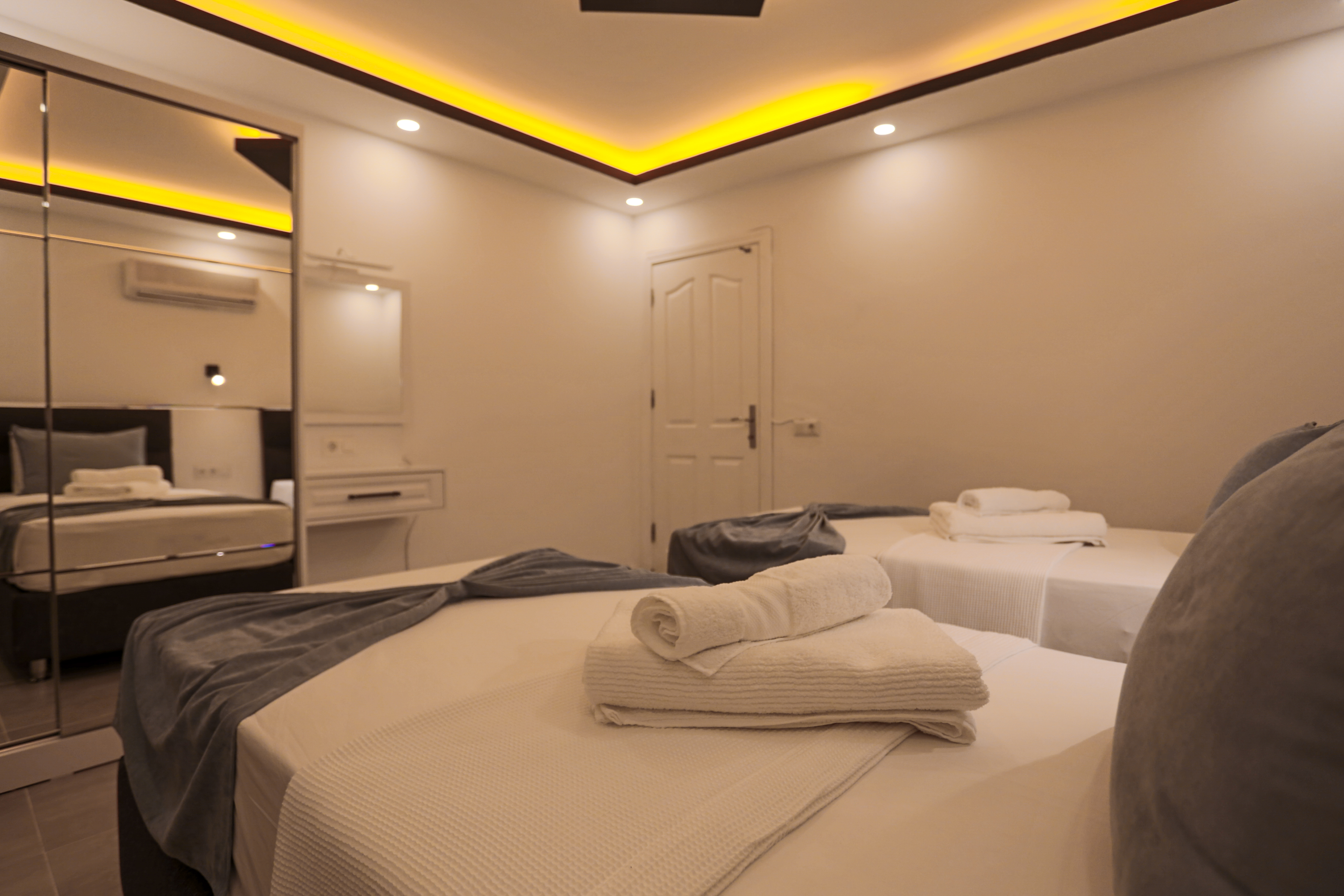 2. Yatak Odası : 2 adet tek kişilik yatak, giysi dolabı, makyaj masası, komidin ve klima bulunur.