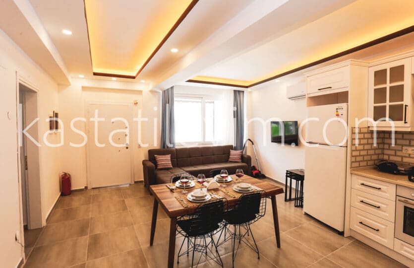 Tatil Eviniz Kaş’ın merkezinde bulunur. Kaş’ın merkezine 400m uzaklıkta bulunan 3 katlı bir binanın bahçe katıdır. Tatil Evinizin girişi dışardan bitişik apartla (No.2007) aynı olup, diğer dairelerden ayrıdır. Tatil Evimiz 4 Kişilik kapasiteye sahiptir. 2 kişi, 1. Yatak Odasında, 2 Kişi, 2.Yatak Odasında, 2 Kişi Salonda açılır kanepede konaklayabilir ve kapasite 6 kişiye kadar çıkabilir. Tatil evinden Küçükçakıl sahiline 400 metre mesafe uzaklığındadır.