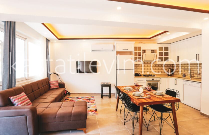 Eviniz, 2+1 olup, açık mutfaklı bir salon, 1 ortak kullanım banyo-tuvalet, 2 yatak odası bulunur. Salondan Bahçeye direk çıkış vardır. Her odada bulunan klimaları vardır.